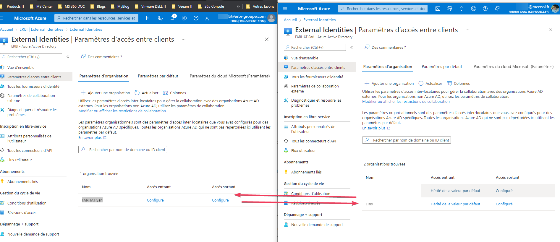Remarque : Azure AD bloque toutes les fonctionnalités de connexion directe B2B entrantes et sortantes par défaut pour tous les locataires Azure AD externes.