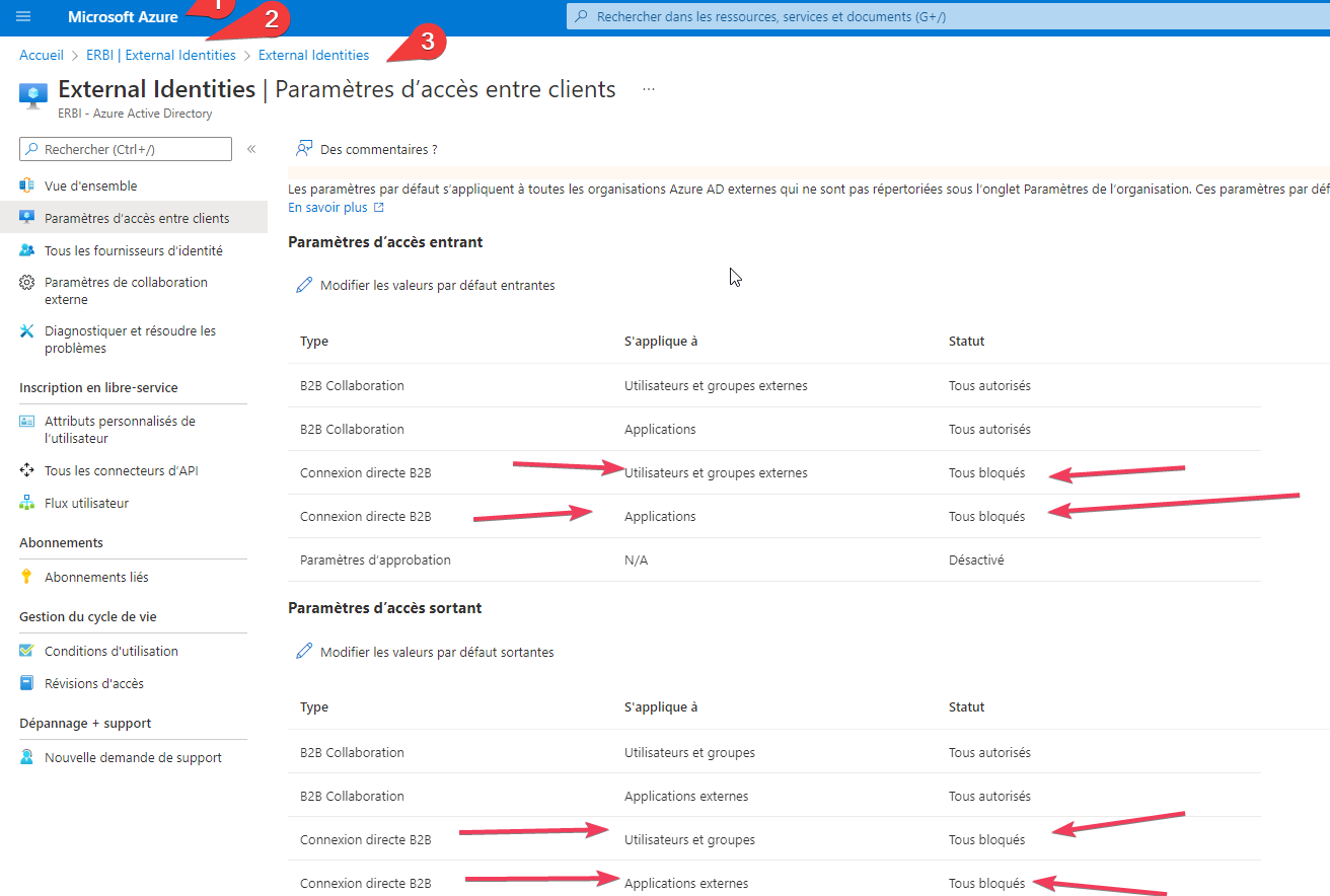 Voici les Autorisations par défaut d’un TENANT ou le B2B direct est bloqué